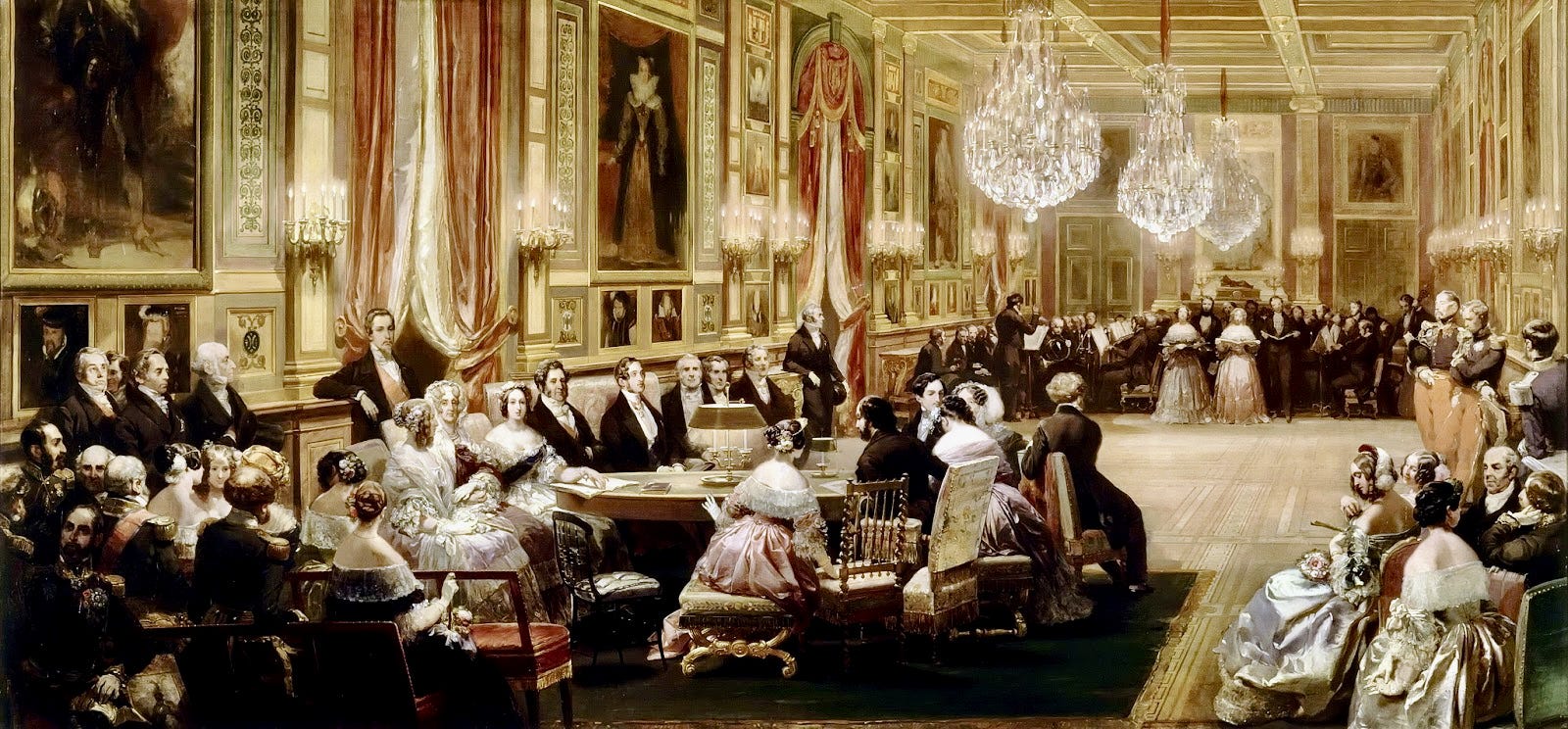 While they want to leave, knowing something is off, they must stay for their own safety from the dark of night. Music calls them onward, signifying “that they have entered something long in Progress, existing without them, not for their Benefit, nor even their Attention” (413). The surveyors may very well have been called to America to continue this project just as they arrived at the estate, but the project itself has been going on in the background for far longer than they have been aware of it — ‘not for their Benefit,’ but for that of the inhabitants of this estate. And speaking of these inhabitants, while viewing the elaborate art and architecture of this estate, they are welcomed in by an unnamed figure who draws them into the grand ballroom where many are currently dancing to the music they had heard.